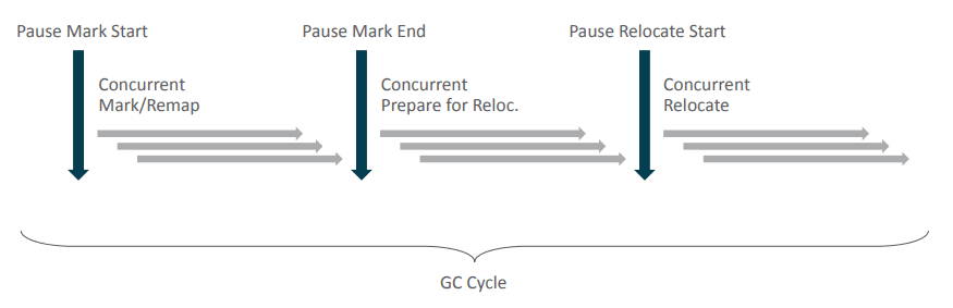 ZGC 是 JDK11 新推出的一款低延迟垃圾回收器,和 G1 类似,ZGC 也采用了标记-复制算法,同样也对堆进行 Region 划分,ZGC 在标记、转移和重定位阶段几乎都是并发的,这是 ZGC 实现停顿时间小于 10ms 目标的最关键原因。ZGC 的 STW 只依赖于 GC Roots,停顿时间不会随着堆的大小或者活跃对象的大小而增加。